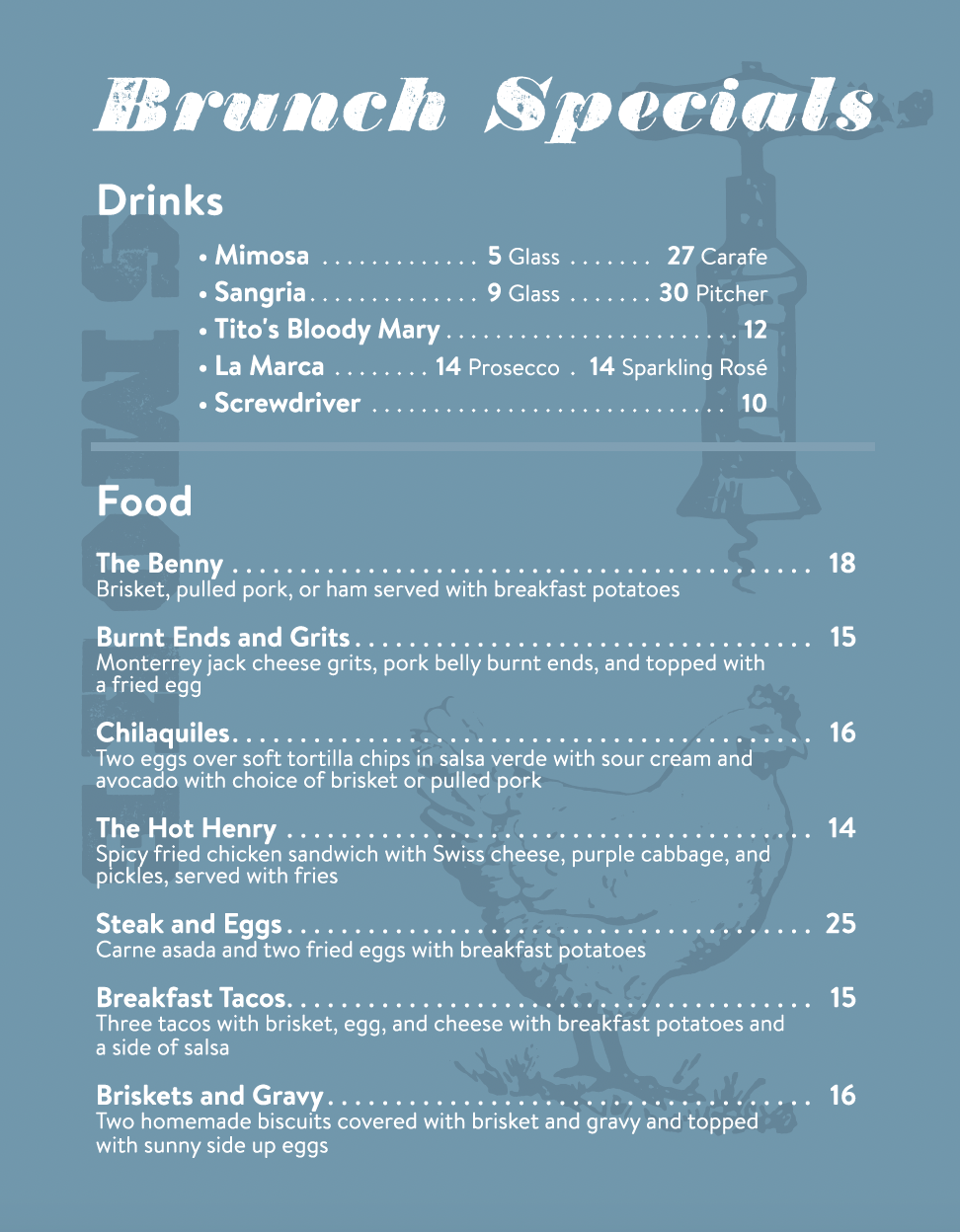 Brunch is served on Sundays only from 10:30am to 3pm.